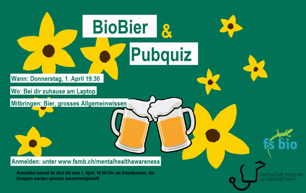 Am Donnerstag, 1. April um 19.30 findet ein Online-Pubquiz statt, organisiert in Kollaboration mit der Fachschaft Medizin.