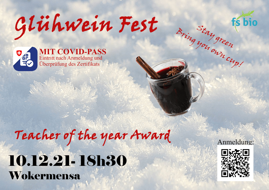 Am Freitag, 10. Dezember 2021 wird es zum vorzeitigem Abschluss des Semesters ein Glühwein-Fest geben. Es wird wieder in der Woker-Mensa ab 18.30 stattfinden und es gelten die üblichen Regeln: Bitte bringt euer COVID-Zertifikat mit.