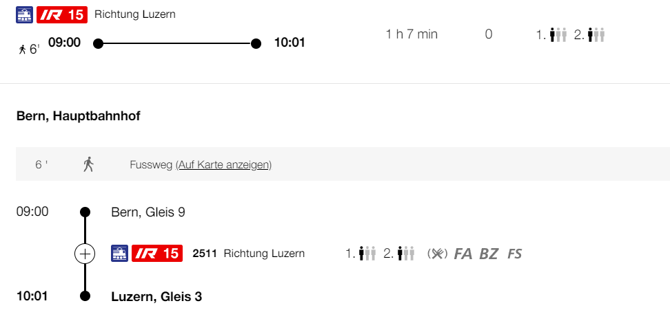 Nach der Stadtführung kann man um 16.00 Uhr zurück nach Bern reisen und wir werden um 17.01 in Bern ankommen.