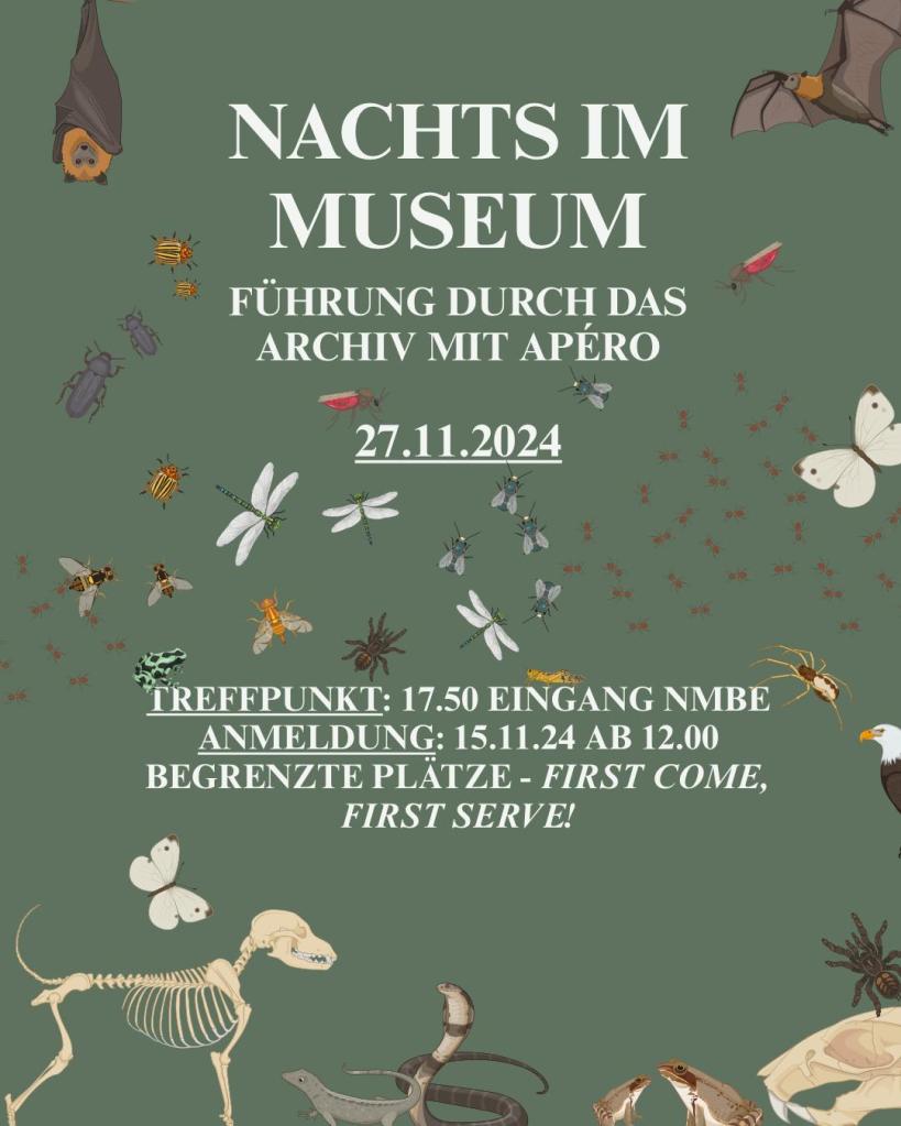 Wie jedes Jahr findet unter der Leitung von Dr. Hertwig und Prof. Dr. Fabre am Mittwoch, 27. November 2024 um 18.00 Uhr eine private Führung durch das Archiv des Naturhistorischen Museums in Bern statt.