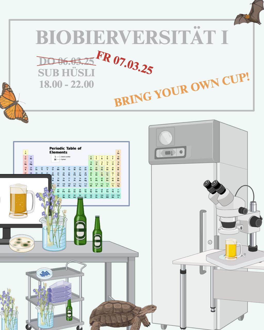 Die Biobierversität ist ein gemütliches Apèro, das einmal im Monat im SUB-Hüsli (Lerchenweg 32, Bern) stattfindet. Studenten aus der Biologie und aus anderen Studiengängen, Doktorierende, Dozenten, Freunde und Bekannte sind alle herzlich eingeladen bei einem Bier (oder zwei) zusammenzusitzen, sich auszutauschen, neue Kontakte zu knüpfen und in einer freundlichen Atmosphäre einen schönen Abend zu verbringen.