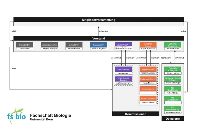 Wer sind wir? Zurzeit besteht der Fachschaftsvorstand aus einer Gruppe von 7 Studierenden aus verschiedenen Semestern des Studienganges Biologie. Unsere Aufgabe besteht darin, ein Bindeglied bezüglich der Kommunikation zwischen dem Departement, den Profs, etc. und den Studenten zu sein. Darüber hinaus organisieren wir Events, welche mal mehr und mal weniger mit unserer Studienrichtung zu tun haben. Ausserdem versuchen wir sämtliche Semester mit Zusammenfassungen und anderen Hilfsgütern, welche das Studium angenehmer gestalten können, zu versorgen.